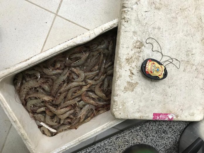 Ao todo, foram apreendidos 20kg de camarão rosa, que ficarão sob guarda do IBAMA e, posteriormente, serão encaminhados a entidades beneficentes.