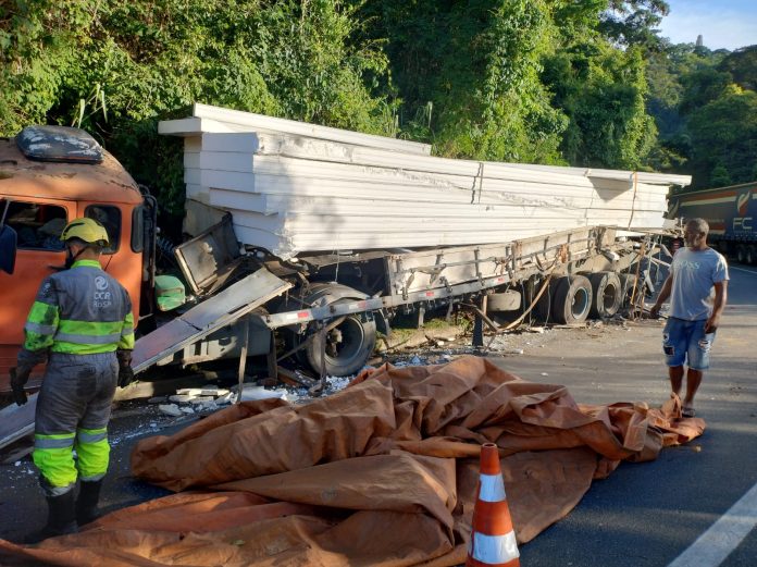 Uma colisão lateral envolvendo duas carretas ocorrido na manhã desta quarta-feira (dia 12) na descida da Serra das Araras está causando sérios transtornos no trânsito no sentido Rio. Segundo a CCR RioSP, há retenções entre os quilômetros 239 e 229, com congestionamento intenso na pista expressa.