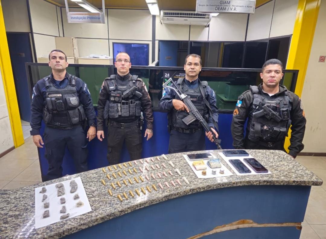De acordo com a PM, equipes do programa Bairro Presente faziam patrulhamento na região, que é conhecida pelo intenso comércio de entorpecentes, quando receberam denúncias de populares sobre dois homens que estariam vendendo drogas no local. Os agentes passaram a observar a movimentação e, em seguida, montaram um cerco com apoio de outra guarnição.