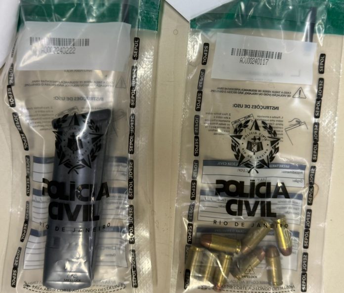 Durante a ação, o suspeito disparou contra os policiais e conseguiu fugir, deixando para trás um carregador de pistola com munições e dois rádios transmissores.