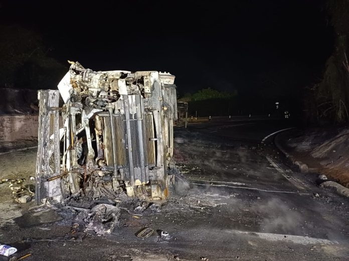 O caminhão transportava cerca de 45 mil litros de etanol hidratado, que se espalharam pela pista e alimentaram o incêndio, atingindo também a vegetação às margens da estrada. Ainda não há informações sobre o que teria causado o acidente.