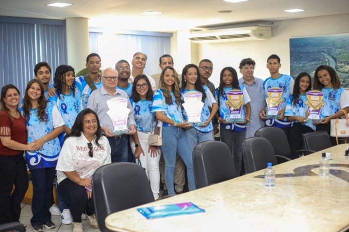 Durante a visita ao gabinete, os alunos compartilharam a emoção pela conquista e pela oportunidade de representar a cidade.