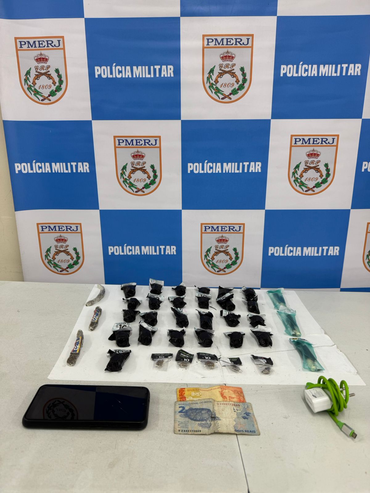 O suspeito foi levado para a 93ª DP (Volta Redonda), onde permaneceu preso em flagrante por tráfico ilícito de drogas, conforme o artigo 33 da Lei nº 11.343/06.