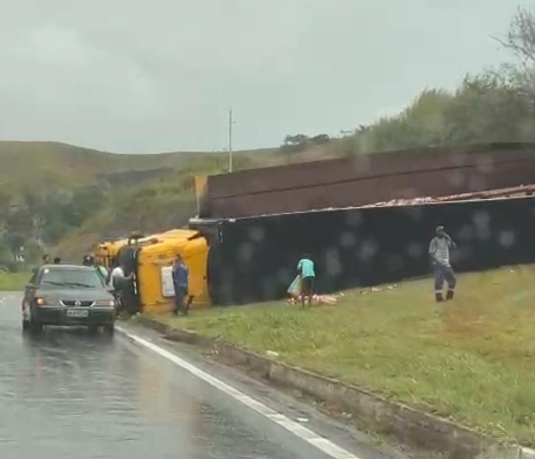 Um caminhão que transportava cerveja tombou na tarde desta segunda-feira (dia 27) na Rodovia Presidente Dutra, em Barra Mansa, na altura do km 279, no bairro Cotiara. Segundo informações preliminares, o veículo perdeu o controle, fez um movimento em “L” e acabou tombando na pista.