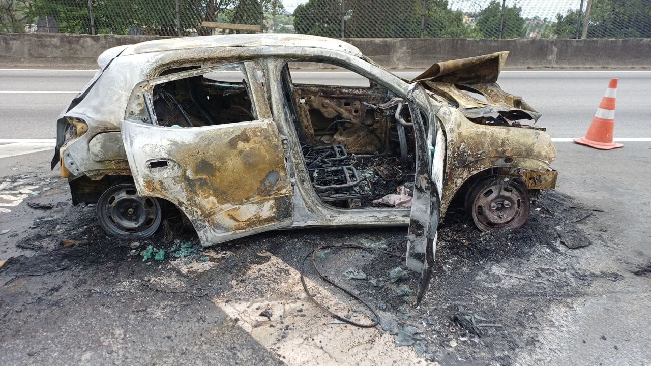 Um carro pegou fogo na manhã desta sexta-feira (dia 7) na Rodovia Presidente Dutra, em Barra Mansa. O fato ocorreu na altura do km 276, sentido São Paulo, próximo ao bairro Monte Cristo. Segundo a Polícia Rodoviária Federal (PRF), o veículo, um Renault Kwid, ficou totalmente destruído pelas chamas, mas o casal que estava a bordo conseguiu sair a tempo e não se feriu.