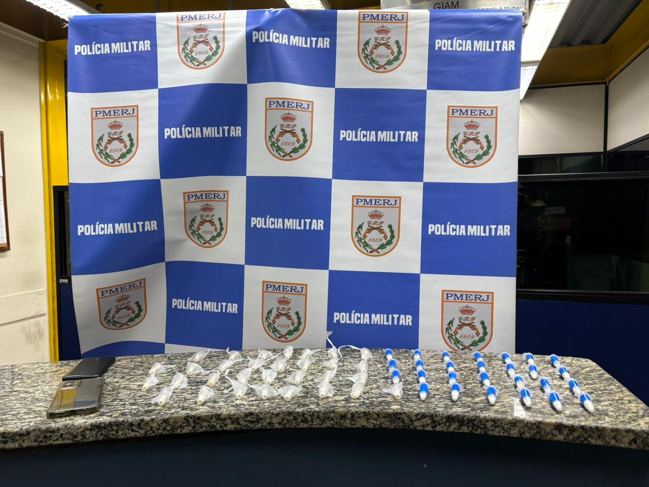 Os suspeitos foram levados para a 90ª DP, onde o material apreendido foi periciado, confirmando tratar-se de cocaína. Ambos foram autuados por tráfico e associação para o tráfico de drogas, conforme os artigos 33 e 35 da Lei 11.343/2006, e permanecem presos à disposição da Justiça.