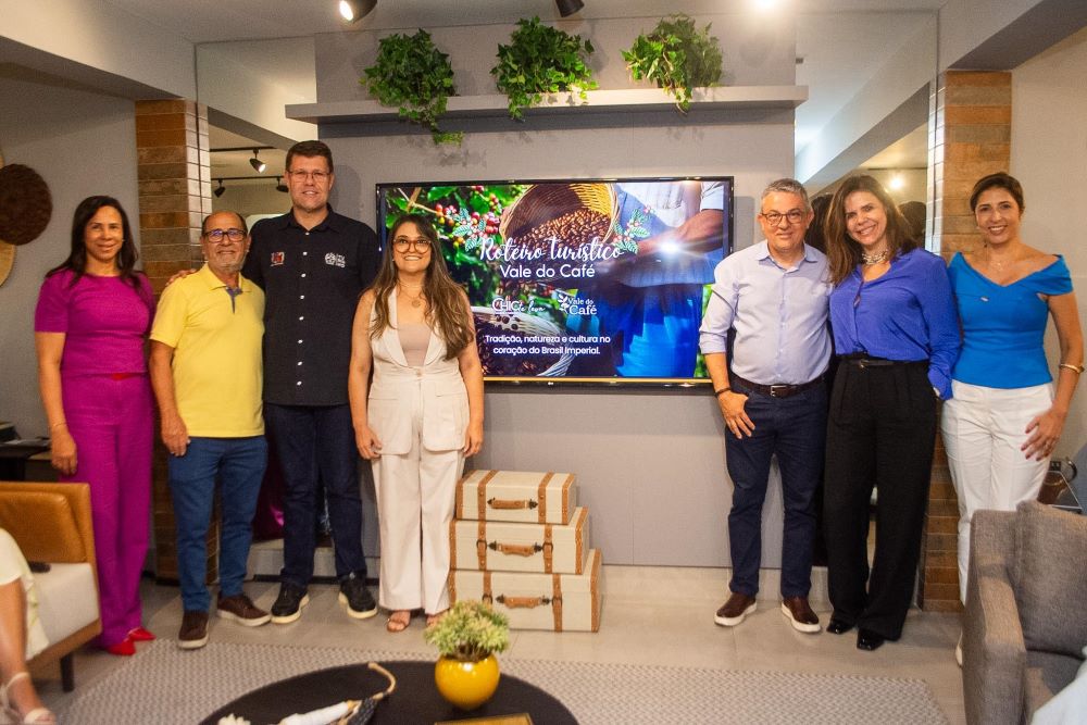 O novo roteiro turístico “Imersão Vale do Café” foi lançado oficialmente na quinta-feira (dia 13), na agência Chic Viagens, de Volta Redonda, com a presença do secretário de Estado de Turismo do Rio de Janeiro, Gustavo Tutuca, da empresária Ana Paula Rocha, da Chic Viagens, de Wanderson Farias, assessor especial da SeturRJ, além de produtores locais e convidados especiais.