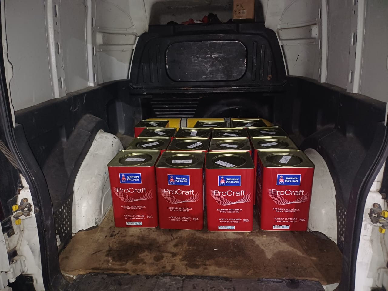 No veículo, os agentes encontraram 15 latas de tinta de 20 litros cada. O motorista afirmou trabalhar como entregador por aplicativo e disse ter sido contratado para transportar o material até a capital. No entanto, a 93ª DP confirmou que o proprietário da loja e um funcionário registravam ocorrência, relatando que o suspeito havia apresentado um comprovante de PIX falso no valor de R$ 4.360 para retirar a mercadoria.