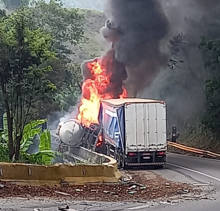 De acordo com as primeiras informações, a carreta de combustível tombou na altura do km 229 da Rodovia Presidente Dutra. Logo em seguida, outro caminhão colidiu contra o veículo já tombado. O impacto provocou um incêndio de grandes proporções, gerando uma nuvem densa de fumaça escura visível de vários pontos da serra e causando preocupação entre motoristas que trafegam pela região.