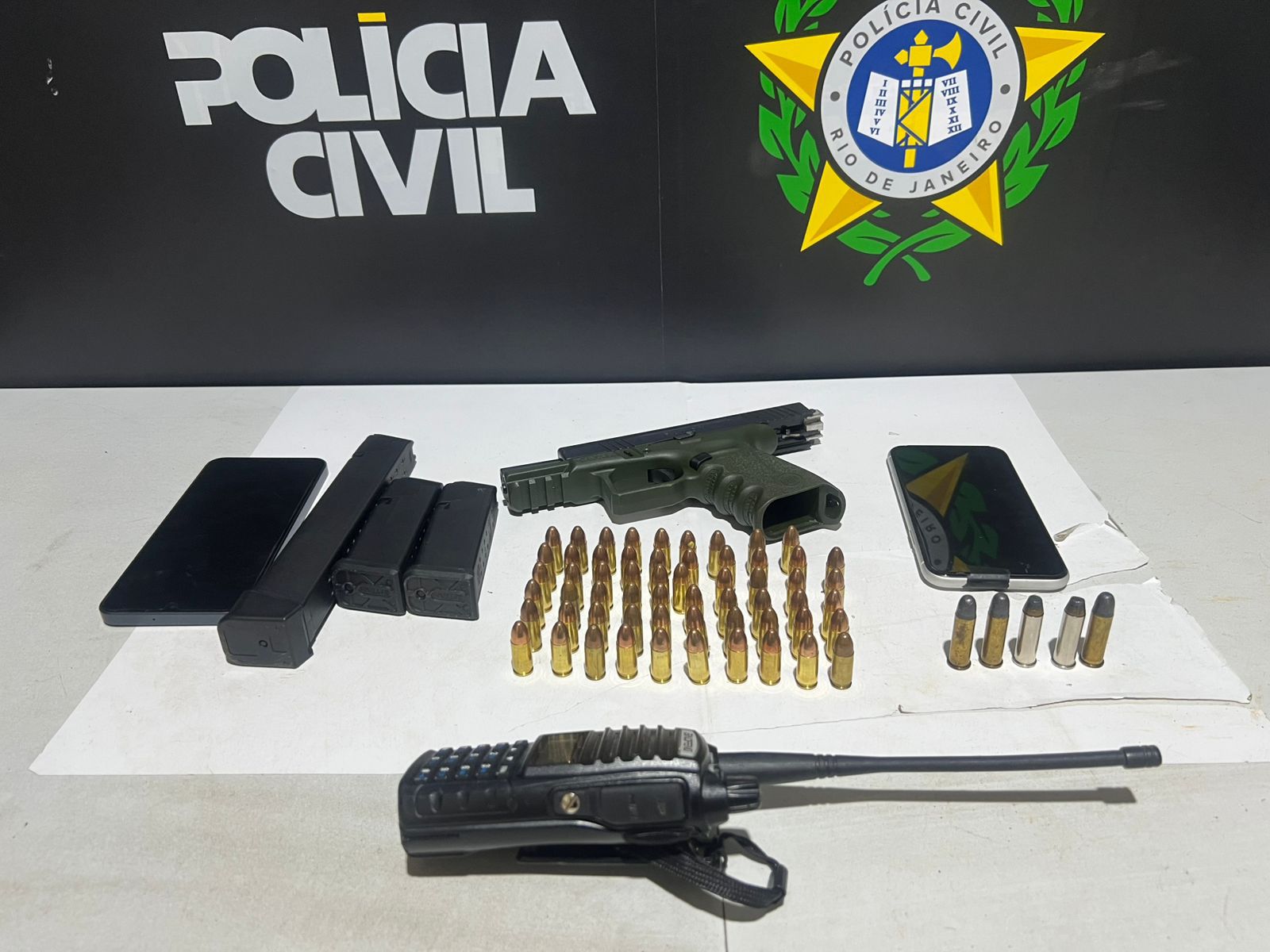 Os policiais cumpriram mandados de prisão e de busca e apreensão, localizando os alvos nas respectivas residências. Durante as buscas em um dos imóveis, os agentes encontraram uma pistola calibre 9mm com numeração raspada e kit rajada, além de 59 munições de 9mm, cinco munições calibre .38, um carregador estendido para 31 munições, dois carregadores convencionais e um rádio comunicador.