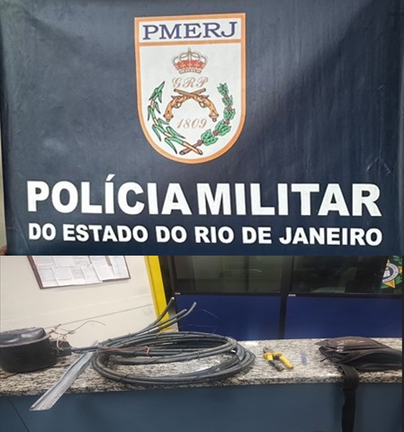 Ao chegar ao local, os agentes encontraram o suspeito com um rolo de fios elétricos recém-cortados, além de um motor – aparentemente de geladeira ou freezer – e uma bolsa com ferramentas usadas para o crime, como alicate, serrinha e chave de fenda. Também foi apreendido um cachimbo utilizado para consumo de entorpecentes.