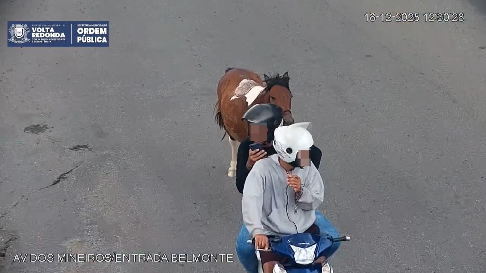 Um cavalo foi resgatado na manhã dessa quinta-feira (dia 18), em Volta Redonda, após ser flagrado por câmeras de monitoramento da Secretaria Municipal de Ordem Pública (Semop) sendo puxado por uma motocicleta ocupada por dois jovens. O animal estava amarrado por uma corda, em uma situação que colocava em risco sua integridade física e também a segurança no trânsito. Além do crime de maus-tratos a animais, o ato também é uma infração grave perante o Código de Trânsito Brasileiro (CTB).