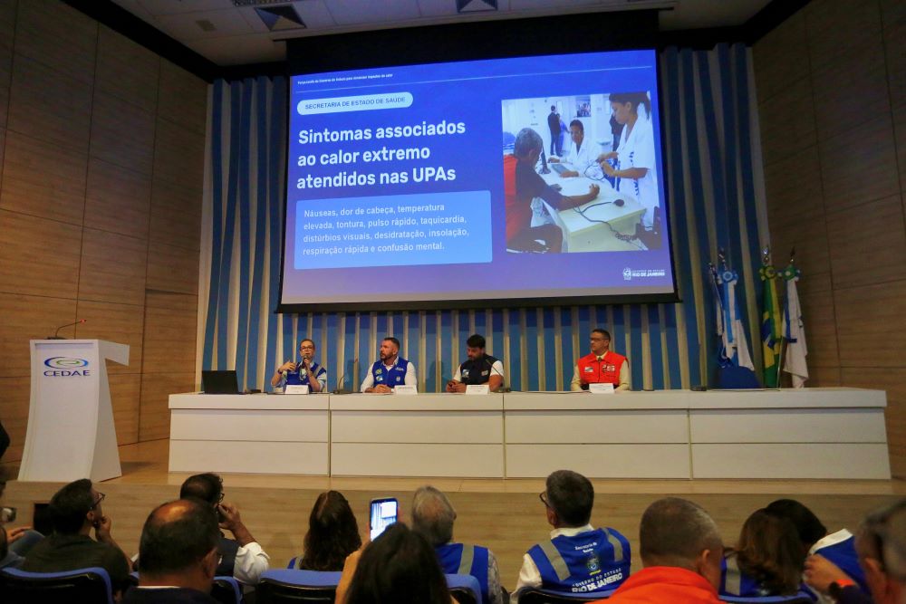 A coletiva de imprensa, realizada na sede da Cedae, teve a participação dos representantes das secretarias de Defesa Civil/ Corpo de Bombeiros, Saúde, Ambiente e da Cedae.