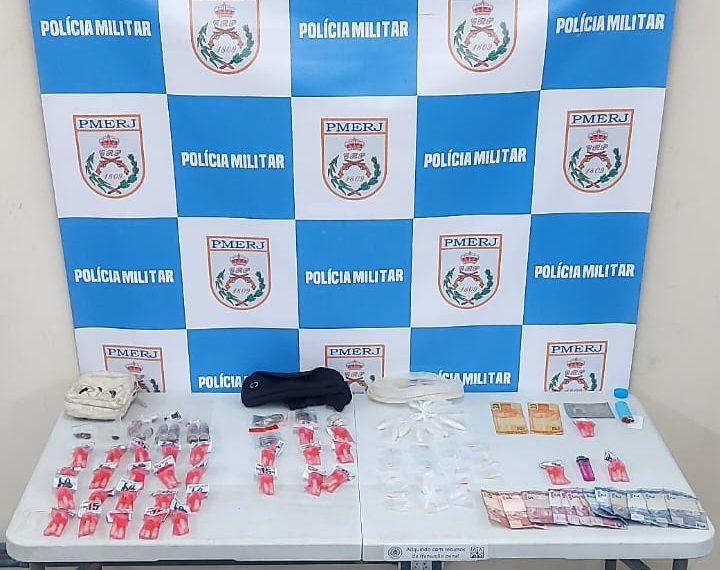 Segundo a PM, a ocorrência teve início por volta das 15h, na Rua Dourados, e se estendeu até às 23h25, quando o caso foi finalizado na 93ª DP. Com os suspeitos, os agentes apreenderam 94 pinos de cocaína, 21 pedras de crack, cinco tiras de maconha, seis frascos de substância inalante conhecida como loló e R$ 97 em dinheiro.