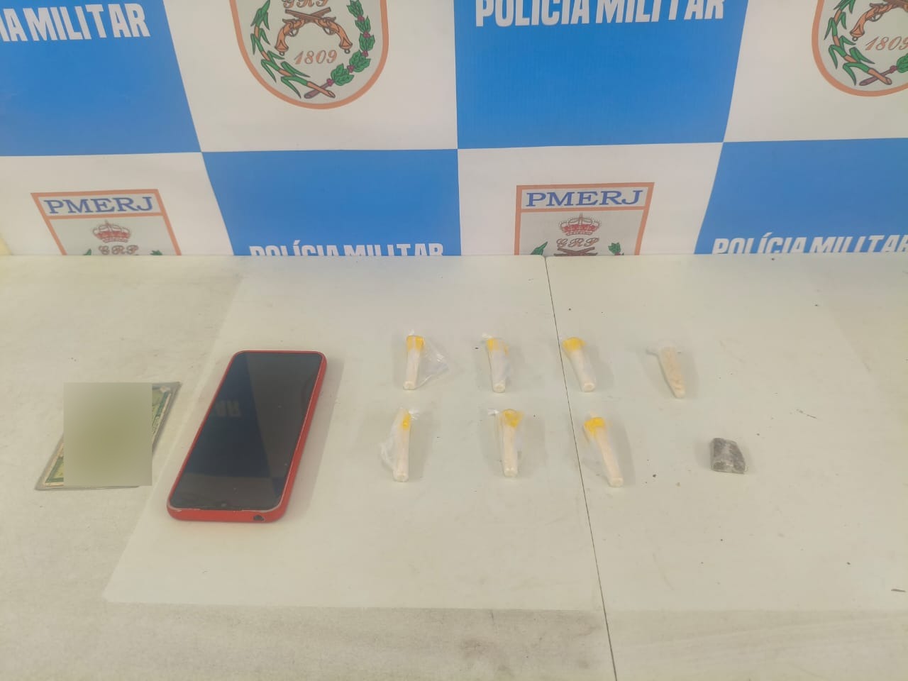 Segundo a PM, a equipe foi informada de que a suspeita estaria comercializando entorpecentes no local. Com base nas informações, policiais do GAT foram acionados para apoio e realizaram a abordagem. Durante a ação, a mulher retirou de dentro da blusa sete eppendorfs de cocaína, totalizando 9,4 gramas, além de um pequeno pedaço de maconha, com cerca de um grama.