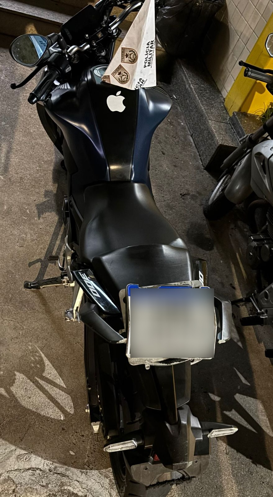 Ainda segundo a ocorrência, a placa encontrada sobre a motocicleta pertencia a outro modelo e não apresentava restrição, o que reforçou a suspeita de adulteração para dificultar a identificação do veículo roubado.
