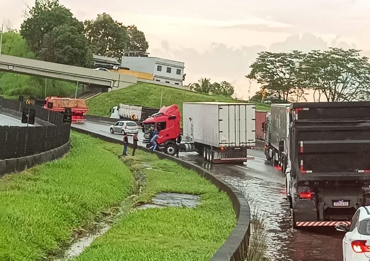 De acordo com as informações apuradas no local, a causa do acidente teria sido uma poça d’água formada pelo acúmulo da chuva sobre a pista, o que fez o motorista perder a estabilidade do veículo. Outros veículos acabaram colidindo em sequência.