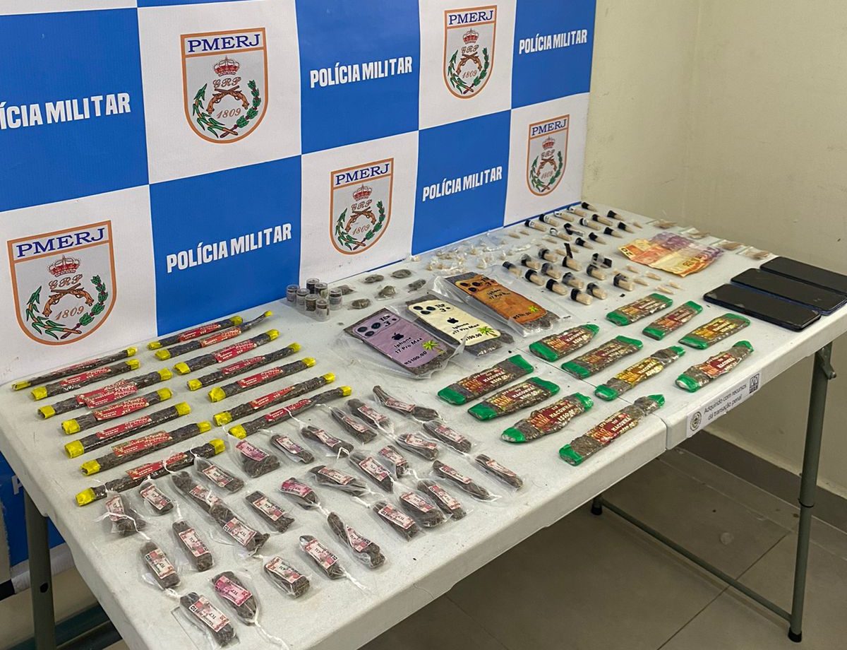 Segundo a PM, os policiais montaram um cerco no local e conseguiram deter dois jovens de 19 anos, outro de 18 e dois menores, de 14 anos, que estavam em posse de uma expressiva quantidade de entorpecentes já fracionados para venda. Entre o material apreendido estão maconha, cocaína, crack e skank, além de celulares, dinheiro em espécie e uma mochila.