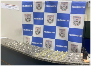 No total, a polícia apreendeu 90 pinos de cocaína, que, após perícia, totalizaram 94 gramas da droga, além de dois rádios transmissores, dois celulares e o dinheiro em espécie. Segundo a PM, ambos não possuíam antecedentes criminais.