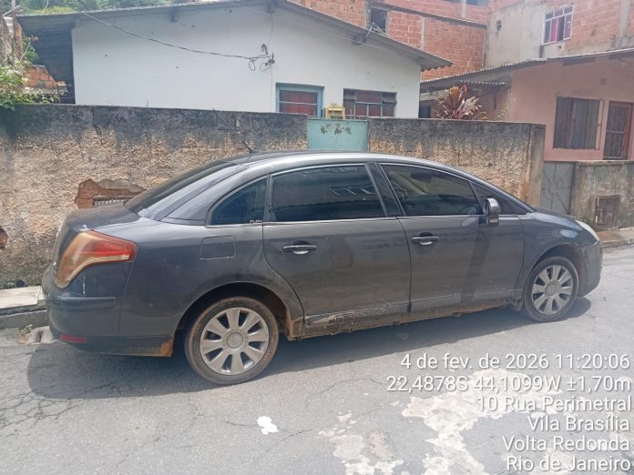 Pouco depois do crime, outra equipe da Polícia Militar localizou um carro supostamente utilizado na tentativa de homicídio. O veículo, um Citroën C4 Pallas, de cor cinza, foi encontrado abandonado na Rua F, no bairro Vila Brasília, em Volta Redonda.