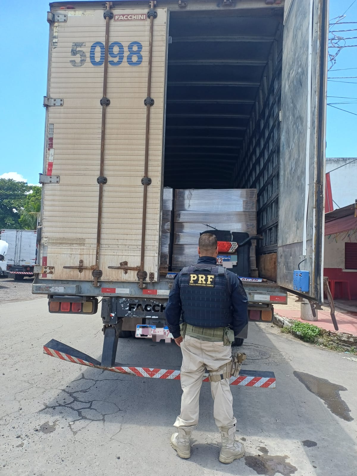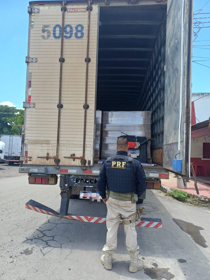 Com base nas informações sobre o deslocamento do caminhão e suas características, os agentes conseguiram interceptar o veículo. Durante a abordagem, foi constatado que as placas do caminhão trator e do semi-reboque haviam sido trocadas. As placas originais foram encontradas no interior do veículo.