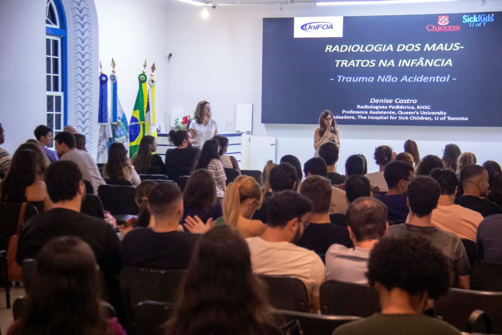 A palestra foi conduzida por Denise de Andrade Castro, radiologista pediátrica, especialista em diagnóstico por imagem e atualmente trabalhando como professora da Universidade Queen’s, em Kingston, no Canadá.