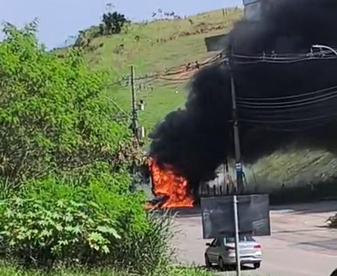 Um ônibus da empresa Expresso Itatiaia pegou fogo no início da tarde desta quarta-feira (dia 18) na Rodovia dos Metalúrgicos, em Volta Redonda. O acidente aconteceu nas proximidades do acesso ao bairro Roma e provocou bloqueio na via, deixando o trânsito completamente parado em determinado momento.