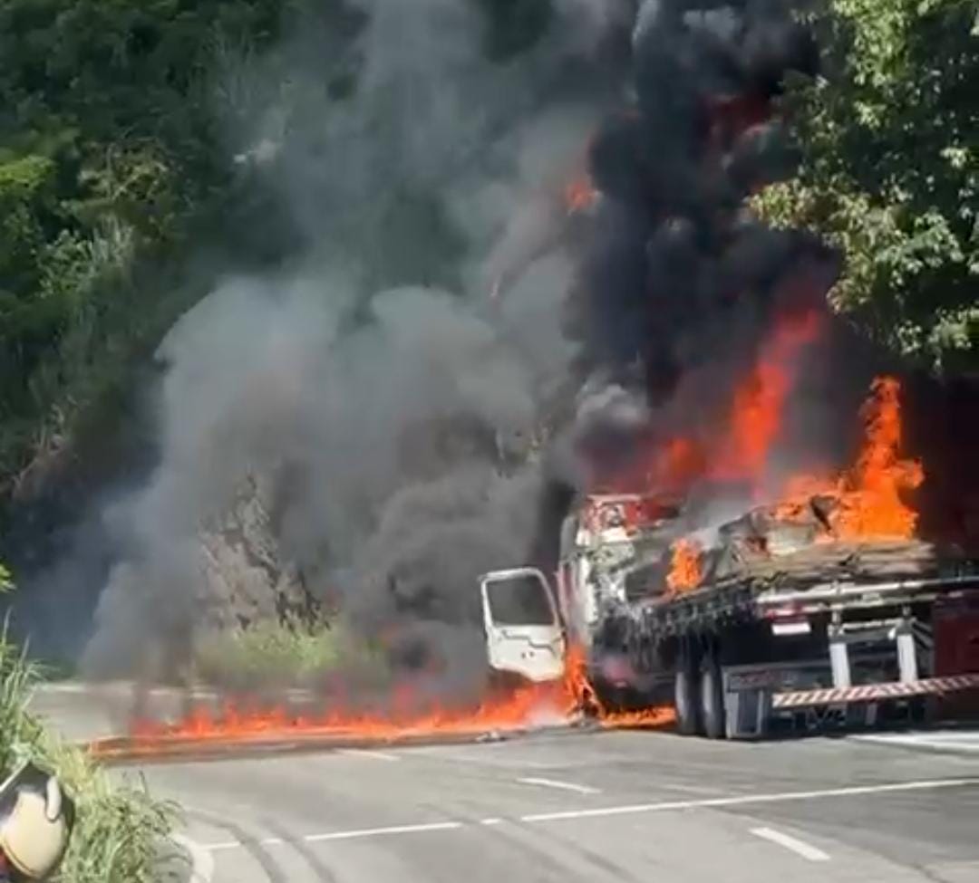 Início Região Urgente: Veículo de carga pega fogo e interdita totalmente a descida da...