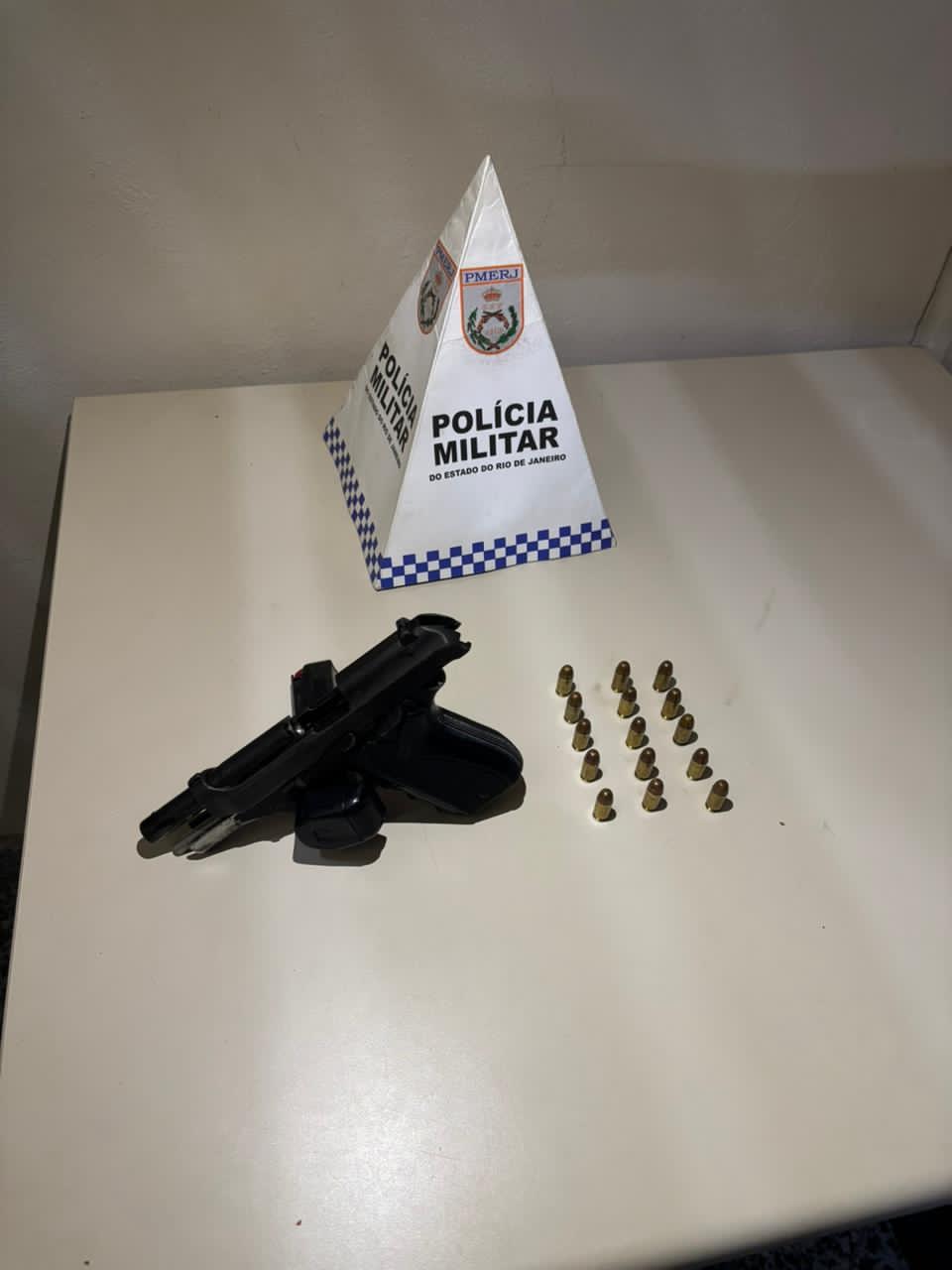 Na ação, foram apreendidos uma pistola calibre .380 com numeração suprimida, 15 munições e um carregador. Após buscas no local, nenhum outro material ilícito foi encontrado.