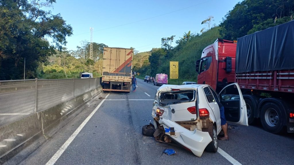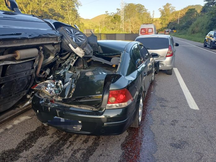 De acordo com a Polícia Rodoviária Federal (PRF), apesar do impacto e do número de veículos envolvidos, ninguém ficou ferido. As circunstâncias da colisão não foram divulgadas.