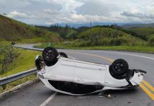 Carro capota na BR-354 e interdita parcialmente pista em Resende